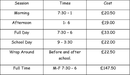 The nursery is open between the hours of 7.30am and 6.00pm from Monday to Friday. Wrap around care is available for children who attend Holy Spirit Primary School and Broad Oak Primary School. These places are limited on a first come first served basis. Wrap around is available until children reach the end of reception. The nursery is closed on Public Bank Holidays and 1 week at Christmas.